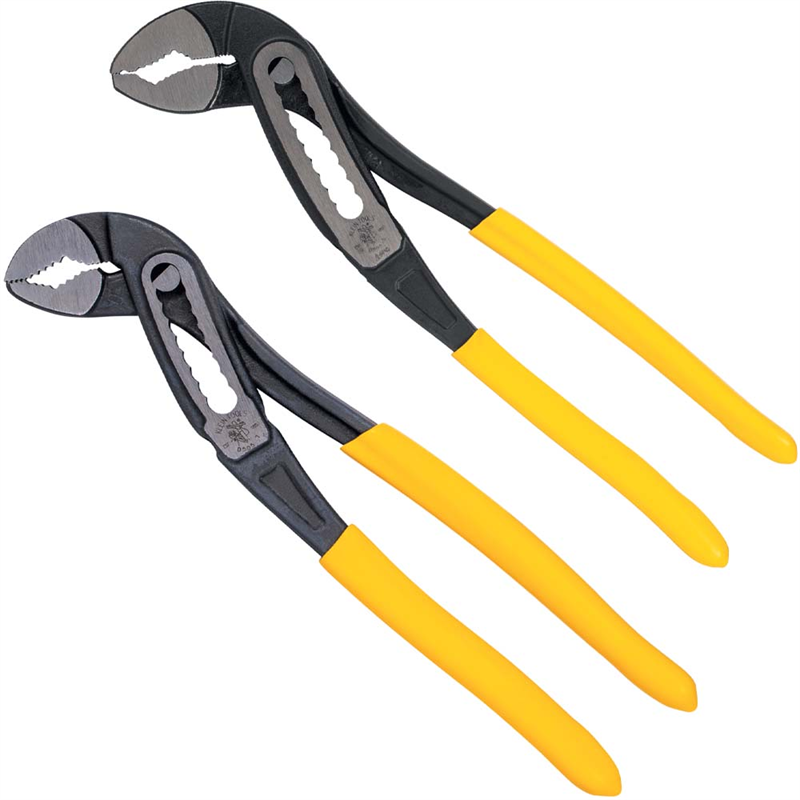 Klein Klaw™ Pump Pliers Set features the 7-Inch and 10-Inch classic style pump plier with a unique curved jaw that provides multiple points of contact for maximum torque and grip. The gripping surface of the jaw is also lined with especially hardened teeth that reduce wear and provide positive grip. Durable construction makes these Classic style pump pliers tough enough to handle the job.