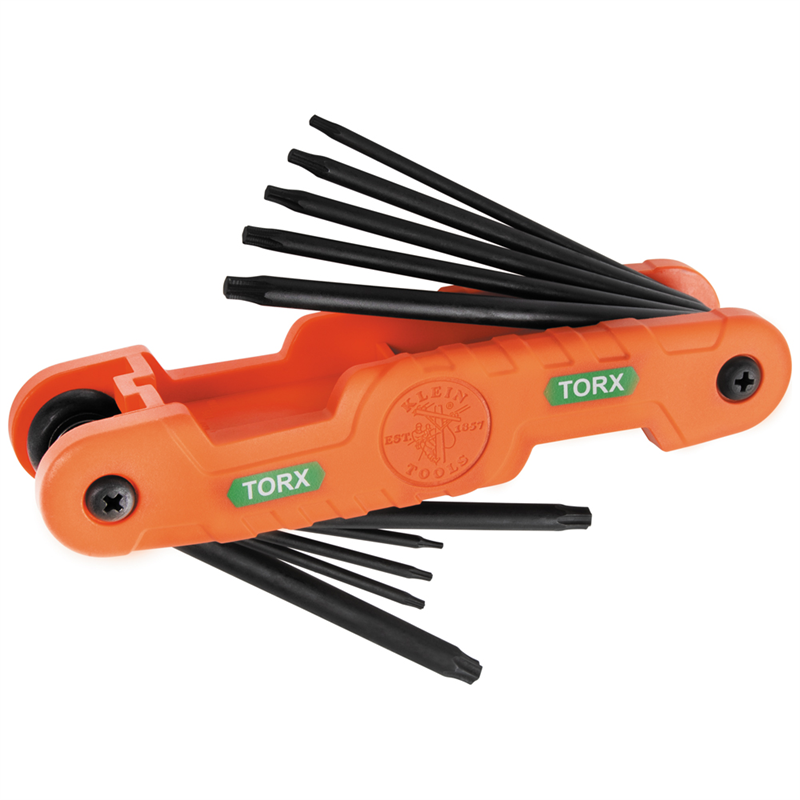 Klein Tools' Pro Folding Hex Key line features a highly durable reinforced nylon handle with easy access to each key. The heavy-duty 10-Piece set includes 4-Inch-long extended reach blades and a strategically placed #2 Phillips fastener on the outer body for effortless key tension adjustment. Klein Tools' hex sets are color-coded for quick identification: red for inch, blue for mm, and green for Torx®, enhancing efficiency.
