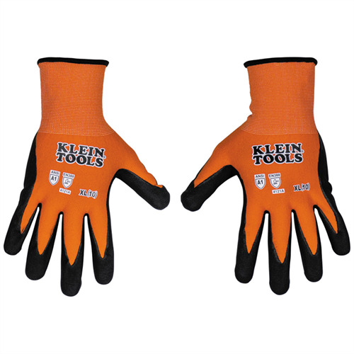 Klein Tools Knit Dipped Cut 1 Gloves are the ideal everyday glove for any job that requires maximum dexterity and light hand protection. These gloves will keep your hands clean and protected from cuts and abrasions when working. The nylon-spandex knit fabric allows the gloves to stretch easily over your hands, offering ultimate comfort and dexterity to ensure ease in even the most detailed work. Touchscreen capabilities allow you to stay protected all day by allowing you to use screens while wearing the gloves.