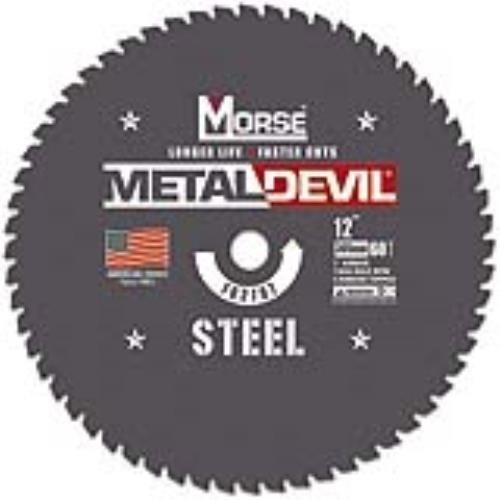 Morse Metal Devil, CSM1260FSC (102797), is specifically designed for cutting steel plate and small solids not exceeding in 3/8" thickness, and tubing, channel, or other structural shapes not exceeding 1/4" wall thickness. Blade has standard 1" diameter arbor hole.