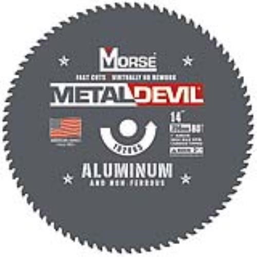 Morse Metal Devil, CSM1480FNFC (102865), is specifically designed for cutting non-ferrous (aluminum, brass, copper) tubing, extrusion, or other structural shapes not exceeding 3/8" wall thickness. Blade has standard 1" diameter arbor hole.