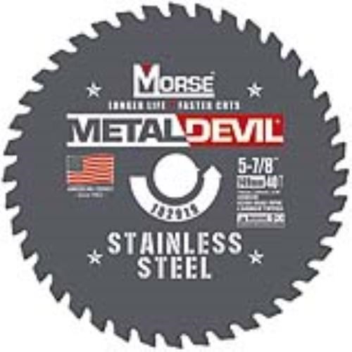 Morse Metal Devil, CSM58840FSSC (102919), is specifically designed for cutting stainless steel plate or small solids not exceeding in 1/4" thickness, and tubing, channel, or other structural shapes not exceeding 1/8" wall thickness. Blade comes standard as 20mm arbor, but is supplied with additional bushings, reducing arbor hole diameter to 10mm or 5/8", accommodating other popular saw machines available in the market.