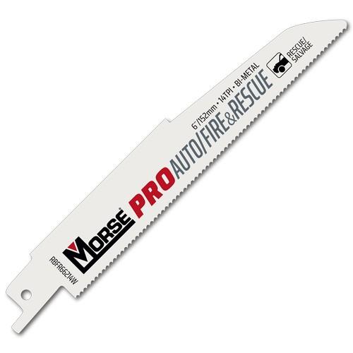 Morse RBFR66214T25 (406475), 6" x 14TPI, bimetal reciprocating saw blade is designed for fast cutting in a variety of applications. Tooth pitch and set pattern make this blade ideal for automotive extrication, modification or salvage. Heavy duty blade body provides rigidity in wider, multiple walled applications, for faster cutting. Twenty five (25) blades per pack.