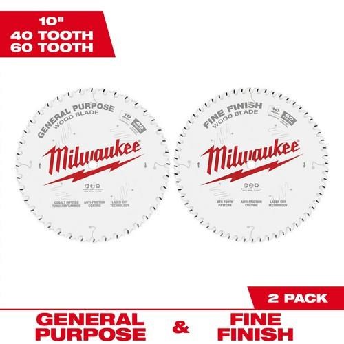 • The 10", two-pack item offers a 60-tooth fine finish blade as well as a 40-tooth general purpose blade.