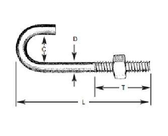 | Model No. | Item No. | O.A. Length (L) | Thread Length (T) | Inside Hook Dia. (C) | Wire Diameter (D) | Thread Size | Pcs. Per Shelf Box | Pcs. Per Case | Lbs. Per 100 Pcs. |