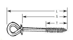 | Model No. | Zinc Chromate No. | Overall Length (L) | Height of Hook | Shank Length (S) | Thread Length (T) | Wire Diameter (D) | Pcs. Per Shelf Box | Pcs. Per Case | Lbs. Per 100 Pcs. |