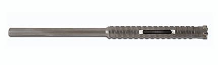 When drilling with a hammer drill or rotary hammer. it is important to stop drilling immediately when a standard carbide bit contacts steel reinforcing bar or wire mesh. If the drilled hole cannot be relocates, a rebar cutter bits is used to drill through the embedded steel. Insert the rebar cutter bit into the chuck of a standard 1/2" rotary drill. Place the bit into the partially drilled hole until it contacts the mesh or reinforcing bar. Drill through the embedded steel with the rebar cutter bit. Once the bit has drilled through the steel, remove the debris from the hole, then continue drilling with the standard carbide tipped bit using a hammer drill or rotary hammer.