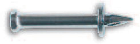 Hammer Drive PinsProduct Description :Hammer Drive pins are designed for permanently fastening a fixture to concrete and some types of concrete block. This fastener is designed for use in a standard hand tool and should not be used in a powder actuated tool. The pins are formed with 1/4" diameter head on one end, a 0.140" diameter shank in various lengths, and a specially designed point to allow proper penetration into the base material. A 3/8" diameter steel washer is mounted over the point to retain the drive pin in the fastener guide of the tool and to provide guidance during the driving operation. This fastener is recommended for light duty static load applications where holding power is not a critical factor. It should not be used overhead.