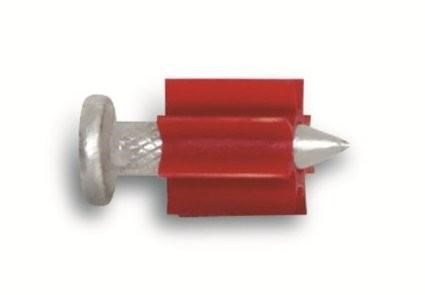 .300" Head Drive PinsDrive pins with a .300 head are designed for permanently fastening a fixture to concrete, some types of concrete block, and A36 or A572 structural steel. The pins are formed with a 0.145" diameter shank in various lengths, and a specially designed point to allow proper penetration into typical base materials. Knurled shank designs are available to increase performance in steel base materials. A plastic flute is mounted over the point to retain the drive pin in the fastener guide of the tool providing guidance during the driving operation.Blue Magic pins offer a hard plastic flute for improved centering in the tool and tip protection.