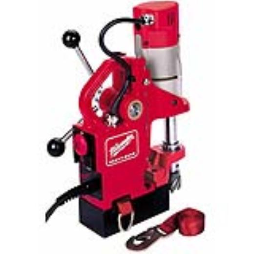 For remote drilling in metal, the 4270-20 is a great choice. The entire tool weighs just 26-1/2 pounds and has a comfortable carrying handle well positioned for balance, with cutter wrenches stored on-board. This is a very portable machine. However, power was not sacrificed for portability. This drill press includes a very powerful 1.1 maximum horsepower, 9.0 amp motor. It can drill up to 1-1/2 in. diameter holes through 2 in. thick steel with annular cutters, or 1/2 in. diameter holes 4-1/4 in. deep with twist drill bits. The tool is setup to accept standard 3/4 in. Weldon shank cutters, or an optional 3-jaw chuck is available for use with twist drill bits. The strong two-coil magnet provides 2,300 lbs. of deadlift force on 1 in. thick steel. The simple two-button control panel is located on the back, away from feed handle obstruction. The feed handle can be conveniently relocated to the opposite side without the use of tools.