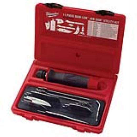 The 11 piece Utility Kit contains one each of the 10 unique blades designed by Milwaukee for use on the Job Saw Handle, which is also included in the kit. The carrying case is made from impact resistant and rust proof (HDPE) high density polyethylene. A kit card in the cover of the case identifies each of the blades by number for future replacement needs. The blades are safely stored in pre-shaped slots in EVA foam. This blade assortment covers a multitude of construction/repair tasks in one convenient kit.