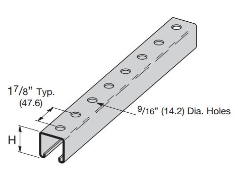 | B26H178GALV10 | 1 5/8” | 1 5/8” | 10' | 16 GA | 1.09 Lbs./Ft. | 9/16" | 1 7/8" | Galvanized