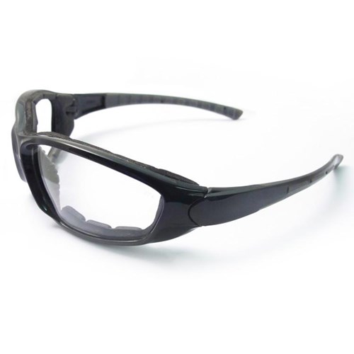 8 base curve wraparound dual lens. Foam lining on inside of lens. Anti-fog lens. Integrated rubber temples for firm hold. Polycarbonate lens offers 99% UV protection. Meets the physical requirements of ANSI Z87.1 and CE EN166.
