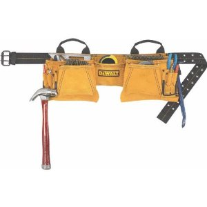 2'' Wide Web Belt with Double-Tongue Roller Buckle helps keep belt stable. Center Pocket for tape measure or extra nails. Patented Pouch Handle allows for simple belt adjustments and easy one-hand carrying. 5 Main Pockets with 7 Smaller Pockets and Sleeves for nails, parts, tools, nail sets, pencils, etc. Double-Gusset Front Pockets provide extra capacity and easy access. Heavy-Duty Suede Leather. Fits Waist Sizes 29'' - 46''.