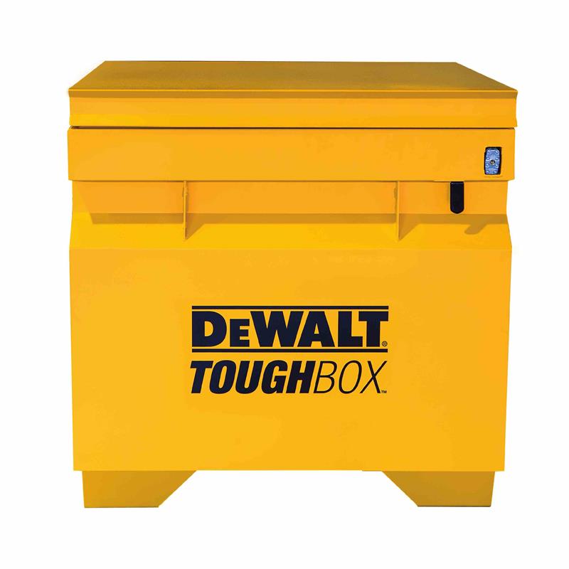 The DEWALT® ToughBox job site storage chest stores all of your professional and personal items on the job site. These storage chests will keep your tools secure with features such as a full-length, staked and welded piano hinge and a 3-point locking mechanism to help prevent break-ins. Additional features have been added to make your job easy and efficient, including integrated rails to store DEWALT® ToughSystem® storage modules (not included). A grommet allows for electrical access, four way skids provide access from any side and two gas springs are standard on all of our units for safe operation of the lid. All DEWALT® ToughBox job site storage chests include a powder-coat finish for industrial strength resilience and protection from the outdoor elements.