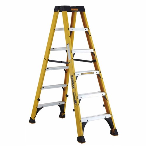 This 6 foot fiberglass twin front step ladder has a 300lb load capacity. The 300lb load capacity applies to each side of the ladder and is built for use by two people (one per side) simultaneously. It comes equipped with a durable top with magnet and tool slots, heavy duty boots and impact absorption system and 25% greater step surface.
