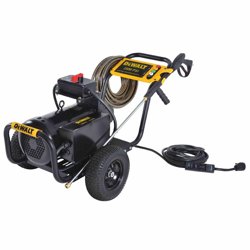 This product features a robust frame design made of heavy gauge steel for durability. With 2500psi and a flow rate of 3.5GPM, this pressure washer offers the performance you expect from DEWALT. The pressure washer features a 6 HP Totally Enclosed Fan-Cooled Electric Motor and a UL/CSA Listed Circuit Disconnect Switch in a Type 4X Enclosure Control Box. It includes a Convenient 50' Steel-Braided High Pressure Hose with 4 Stainless High Pressure Quick Connect Nozzles and a Low Pressure Soap Tip. Comes equipped with a ergonomic professional spray gun designed for comfort and control.