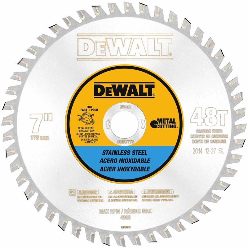 Designed to power through stainless steel with ease, DEWALT Stainless Steel Metal Cutting™ Saw Blades are crafted from carbide for long life and less chipping. Each blade is laser-etched and color-coded by material.