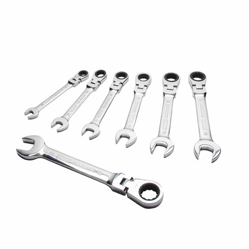 - Metric Flex Head Ratcheting Wrenches: 10, 12, 13, 14, 16, 17, 19