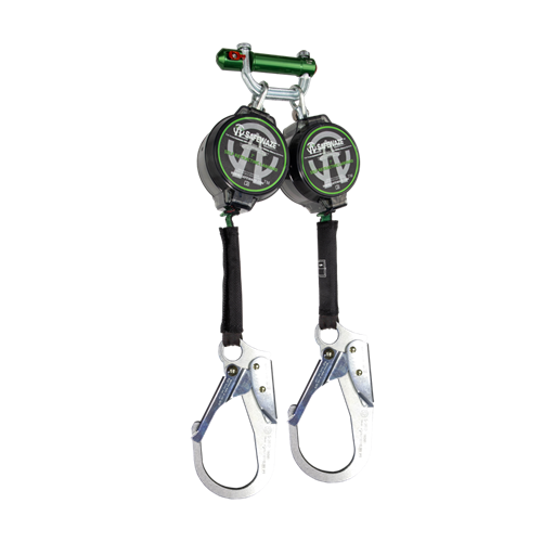The Safewaze 018-5139 dual leg unit with steel form accommodating hooks is lightweight with a durable translucent housing that not only looks unique, but protects the internal components from debris and contamination. The housing also makes for easy viewing and inspection of the webbing, reserve line, and pawl assembly. This unit comes with our 9013 behind the web bracket.