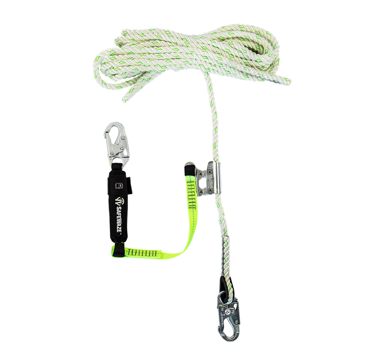 The FS700-50GA-3E is our premium 100% polyester 50" long 5/8" rope lifeline with a double-action forged steel snap hook, steel rope grab, and 3" shock absorbing lanyard attached.
